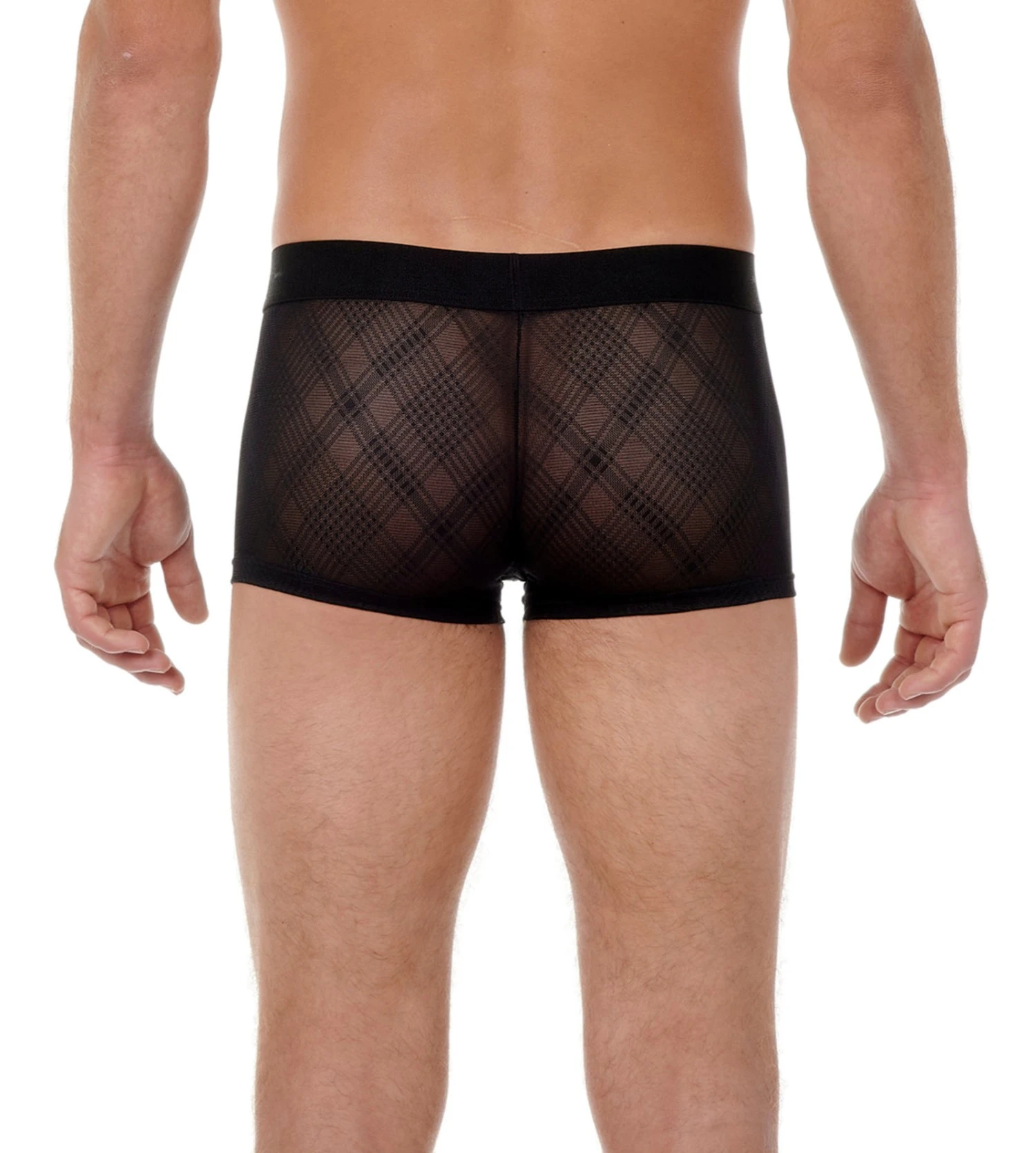 - Boxer homme transparent en tulle à carreaux.