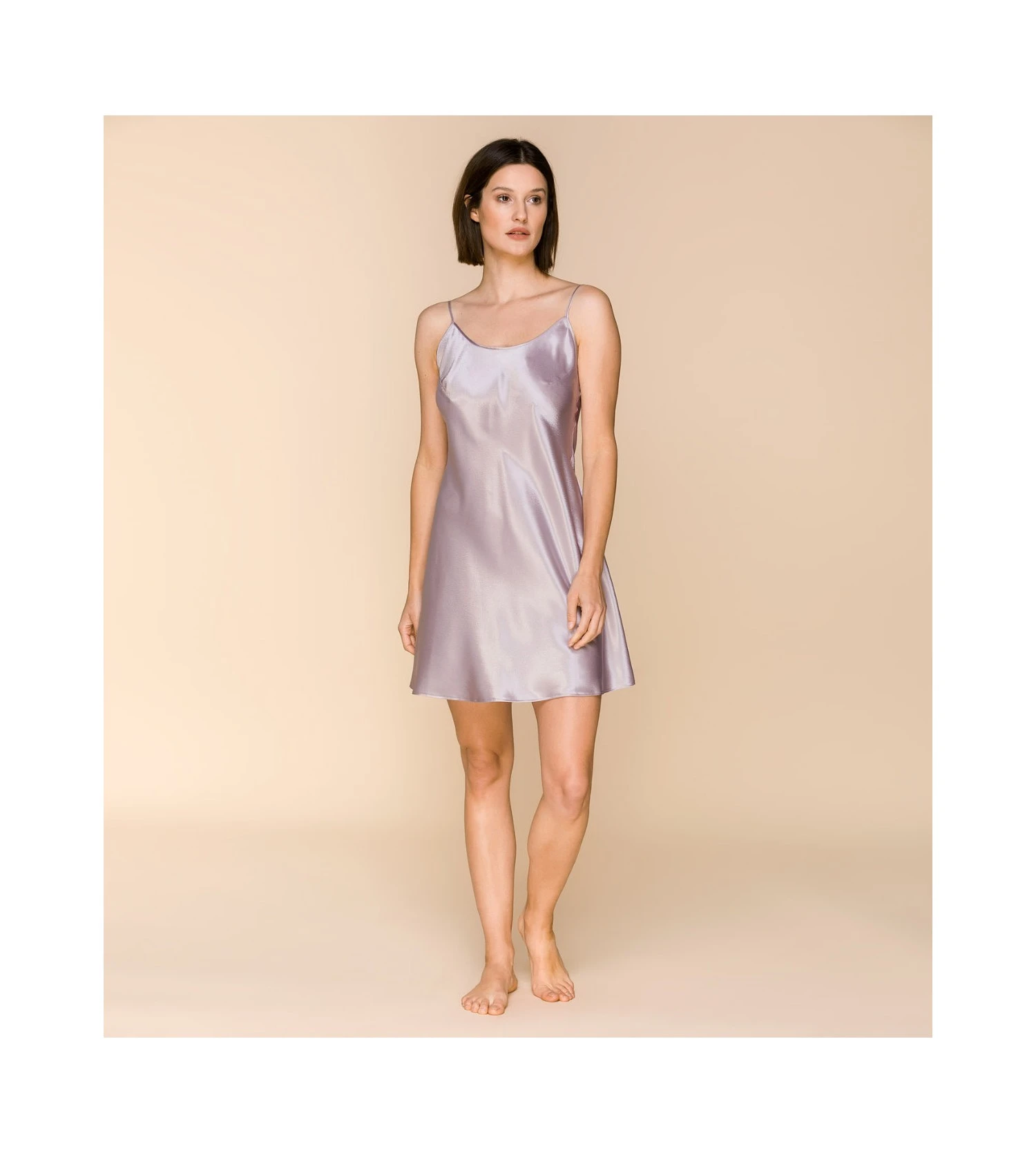- Nuisette à fines bretelles en satin uni.